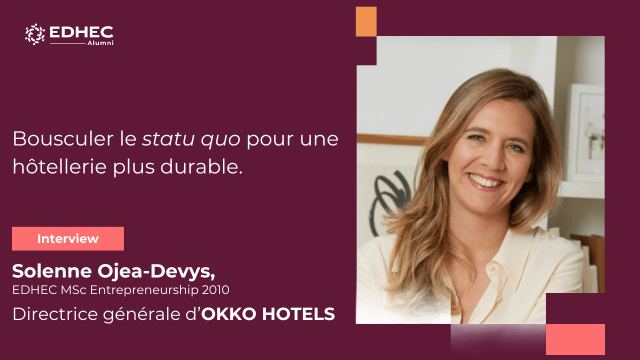 Avec OKKO HOTELS, qu’elle dirige depuis fin 2021, Solenne Ojea-Devys (MSc Entrepreurship & Innovation, 2010) donne une autre place aux PME dans le secteur de l’hôtellerie, et bouscule le statu quo par une politique motrice RSE et un statut d’entreprise à mission. Elle partage les combats et convictions qui ont accompagné l’ouverture des 15 premiers OKKO, et caractériseront l’expansion du groupe dans les années à venir, dans une réflexion sur les nouvelles tendances de voyage.