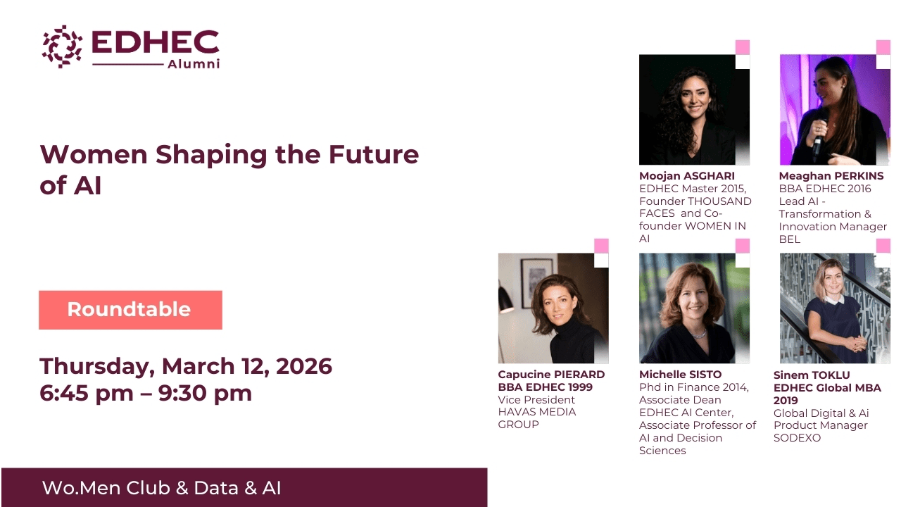 As artificial intelligence continues to transform industries across the board, and following International Women’s Rights Day, the EDHEC Alumni Wo.Men Club is hosting an event dedicated to women in AI.
