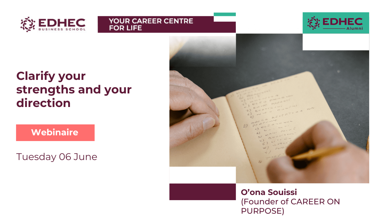 The EDHEC Career Center for Life, in partnership with HEC, invites you to participate in the webinar : Clarify your strengths and your direction.