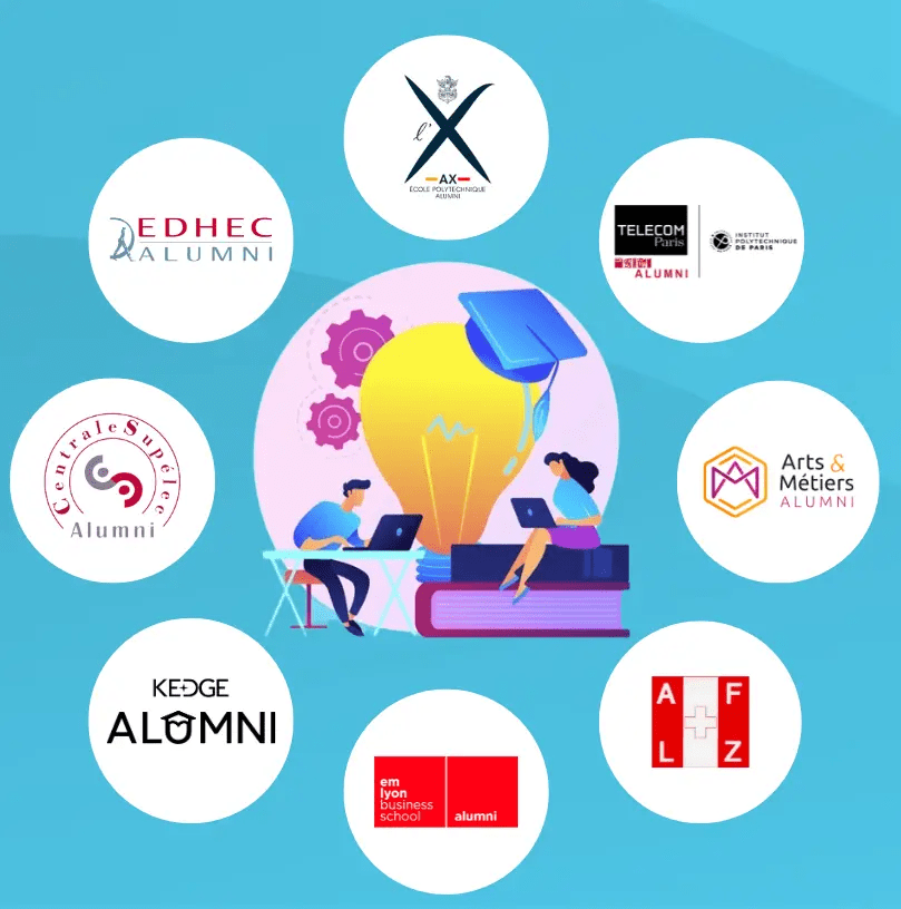 - Exemples d’utilisation en fonction de profils d’alumni ou de thématiques, (en recherche d'emploi, se former au management, comment l'IA peut m’aider