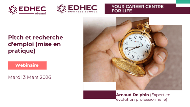 L'EDHEC Career Centre for life t'invite à participer au webinaire : Pitch et recherche d'emploi (mise en pratique).