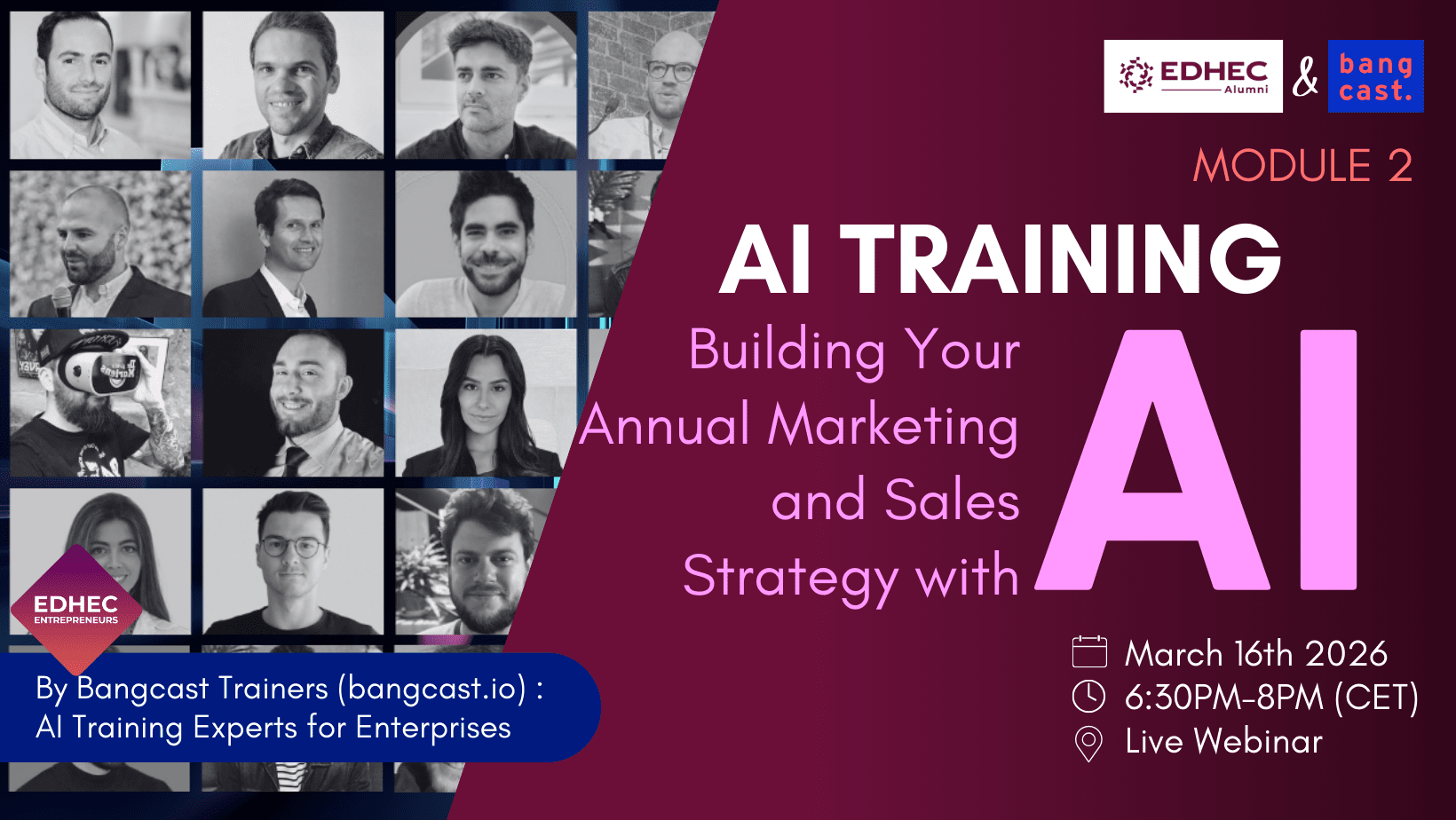 Bangcast trainer, a leading AI training organization co-founded by Delphine Bornert (EDHEC Master 2012) and Benjamin Arbeit Taffarelli.