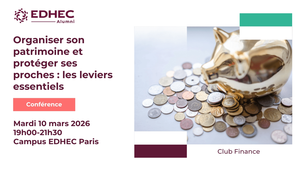 Dans cette perspective, nous vous donnons rendez-vous le mardi 10 mars 2026, de 19h00 à 21h30, sur le campus EDHEC Paris, pour un temps d’échange concret et opérationnel destiné aux alumni souhaitant structurer leur réflexion patrimoniale et éviter les écueils les plus fréquents.