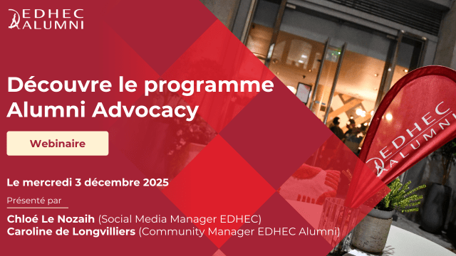Nous avons le plaisir de te convier à une session de présentation du programme EDHEC Alumni Advocacy, une initiative pensée pour renforcer la visibilité et l’influence de l’EDHEC sur LinkedIn, tout en valorisant ta présence et ton personal branding sur les réseaux sociaux.